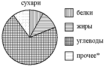 Задание На диаграмме показано содержание питательных веществ в сливочных сухарях. Определите по диаграмме, содержание каких веществ наименьшее.