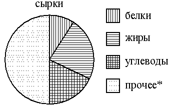 Задание На диаграмме показано содержание питательных веществ в творожных сырках. Определите по диаграмме, содержание каких веществ наименьшее.