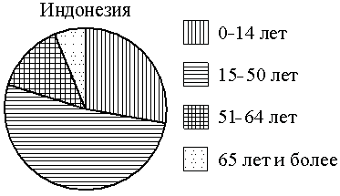Задание На диаграмме показан возрастной состав населения Индонезии. Определите по диаграмме, какая из возрастных категорий самая малочисленная.