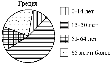 Задание На диаграмме показан возрастной состав населения Греции. Определите по диаграмме, какая из возрастных категорий самая малочисленная.