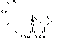 Человек стоит на расстоянии 7,6 м от столба, на котором висит фонарь, расположенный на высоте 6 м. Тень человека равна 3,8 м. Какого роста человек (в метрах)?