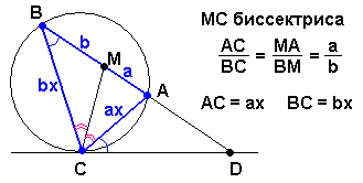 Биссектриса CM треугольника ABC делит сторону AB на отрезки AM=9 и MB=12. Касательная к описанной окружности треугольника ABC, проходящая через точку C, пересекает прямую AB в точке D. Найдите CD.