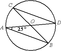 Задание В окружности с центром в точке О проведены диаметры AD и BC, угол OAB равен 25°. Найдите величину угла OCD.