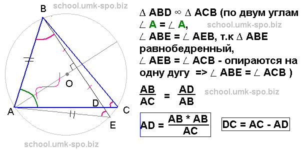 В треугольнике ABC известны длины сторон AB=36, AC=48, точка O — центр окружности, описанной около треугольника ABC. Прямая BD, перпендикулярная прямой AO, пересекает сторону AC в точке D.
