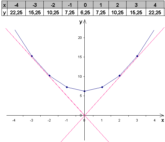 Найдите все значения k, при каждом из которых прямая y=kx имеет с графиком функции y=x2+6,25 ровно одну общую точку. Постройте этот график и все такие прямые.