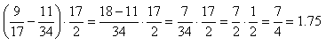 Задание Найдите значение выражения (9/17−11/34)⋅17/2.
