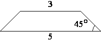 Задание В равнобедренной трапеции основания равны 3 и 5, а один из углов между боковой стороной и основанием равен 45°. Найдите площадь трапеции.