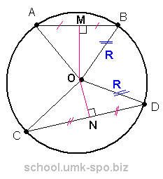 ∆ВМО = ∆ OND ( OB=OD=R, MB = ON = 12) ⇒ ON = BM = АВ/2 = 10/2 = 5