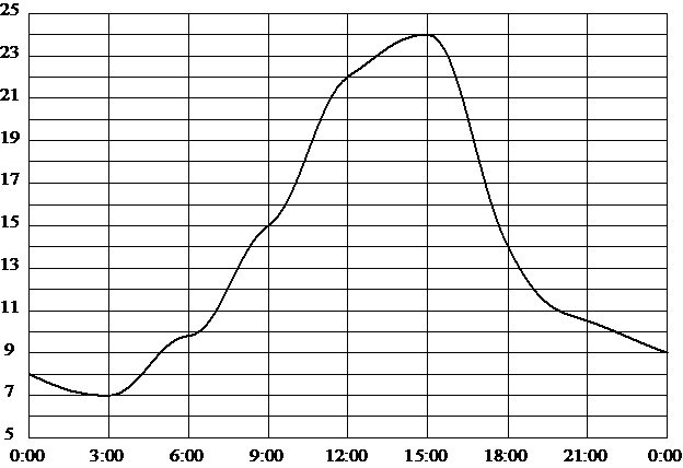 Наибольшее значение температуры 24