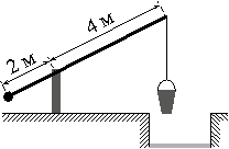 Задание На рисунке изображён колодец с «журавлём». Короткое плечо имеет длину 2 м, а длинное плечо — 4 м. На сколько метров опустится конец длинного плеча, когда конец короткого поднимется на 1,5 м?