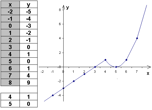 y= x2−10x+25, если x≥4,