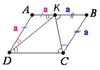 Задание Биссектрисы углов C и D параллелограмма ABCD пересекаются в точке K стороны AB. Докажите, что K — середина AB.