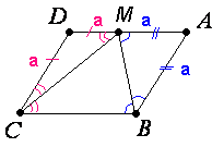 Задание Биссектрисы углов B и C параллелограмма ABCD пересекаются в точке M стороны AD. Докажите, что M — середина AD.