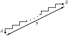 Лестница соединяет точки A и B и состоит из 20 ступеней. Высота каждой ступени равна 30 см, а длина — 40 см. Найдите расстояние между точками A и B (в метрах).