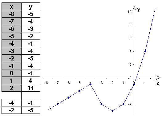 y = x2 +4x−1, если x≥−4,