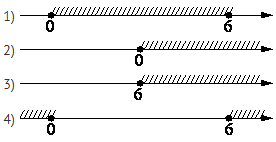 Задание На каком рисунке изображено множество решений неравенства 6x−x2≤0?