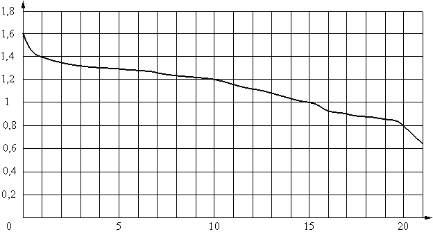 в электрической цепи фонарика падает. На рисунке показана зависимость напряжения в цепи от времени работы фонарика. На горизонтальной оси отмечается время работы фонарика в часах, на вертикальной оси — напряжение в вольтах. Определите по рисунку, какое напряжение будет
