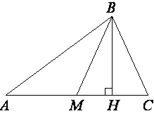 В треугольнике ABC известно, что BM — медиана и BH — высота. Известно, что AC=112, HC=28 и ∠ACB=79°. Найдите угол AMB. Ответ дайте в градусах.