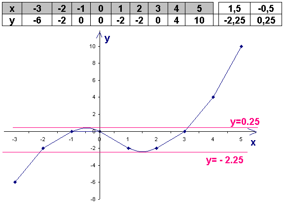 Вершина параболы х = 3/2 = 1,5 ⇒ у = – 2.25