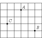 На клетчатой бумаге с размером клетки 1 см × 1 см отмечены точки A, B и C. Найдите расстояние от точки A до середины отрезка BC. Ответ выразите в сантиметрах.