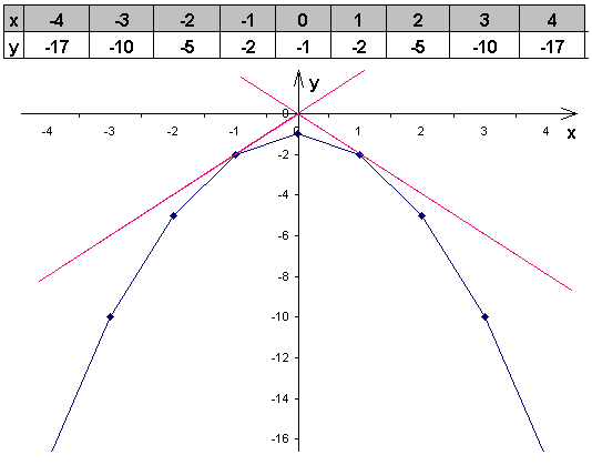 Найдите все значения k, при каждом из которых прямая y=kx имеет с графиком функции y=−x2−1 ровно одну общую точку. Постройте этот график и все такие прямые.