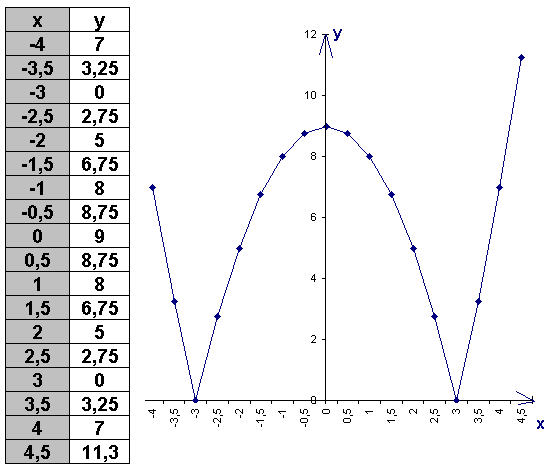 у = ∣x2−9∣