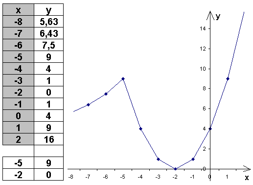 y= x2+4x+4, если x≥− 5,
