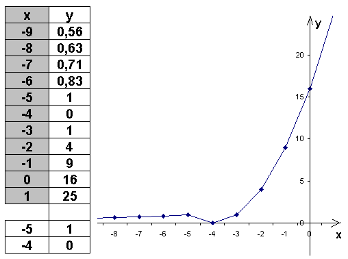y= x2+8x+16, если x≥− 5,