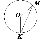 Задание Прямая касается окружности в точке K. Точка O — центр окружности. Хорда KM образует с касательной угол, равный 83°. Найдите величину угла OMK. Ответ дайте в градусах.