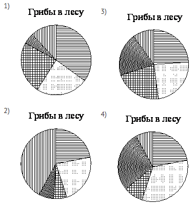 Какая из следующих круговых диаграмм показывает распределение грибов