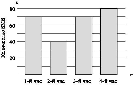 Задание На диаграмме показано количество SMS, присланных слушателями за каждый час четырёхчасового эфира программы по заявкам на радио. Определите, на сколько больше сообщений было прислано за последние два часа программы по сравнению с первыми двумя часами этой программы.