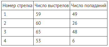 Задание В таблице представлены результаты четырёх стрелков, показанные ими на тренировке.