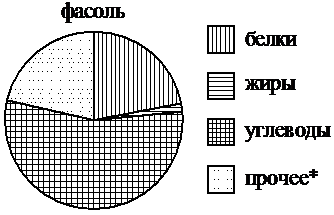 На диаграмме показано содержание питательных веществ в фасоли. Определите по диаграмме, в каких пределах находится содержание белков.