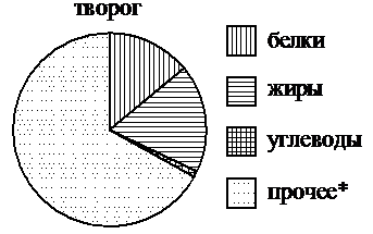 На диаграмме показано содержание питательных веществ в твороге. Определите по диаграмме, в каких пределах находится содержание жиров.