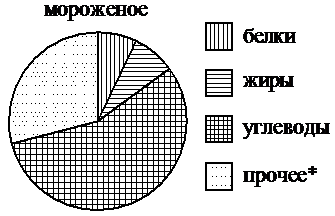 На диаграмме показано содержание питательных веществ в сливочном мороженом. Определите по диаграмме, в каких пределах находится содержание жиров.