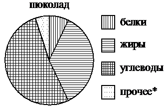 На диаграмме показано содержание питательных веществ в молочном шоколаде. Определите по диаграмме, содержание каких веществ преобладает.