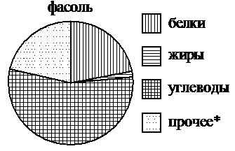 На диаграмме показано содержание питательных веществ в фасоли. Определите по диаграмме, содержание каких веществ преобладает.
