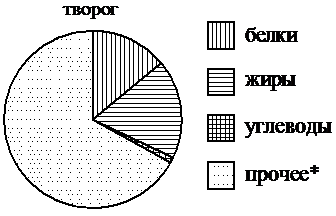 Задание На диаграмме показано содержание питательных веществ в твороге. Определите по диаграмме, содержание каких веществ преобладает.