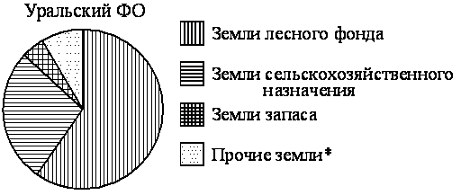 Задание На диаграмме показано распределения земель Уральского федерального округа по категориям. Определите по диаграмме, земли какой категории преобладают.