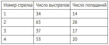 Задание В таблице представлены результаты четырёх стрелков, показанные ими на тренировке.