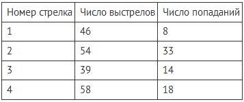 Задание В таблице представлены результаты четырёх стрелков, показанные ими на тренировке.