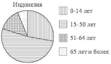 На диаграмме показан возрастной состав населения Индонезии.