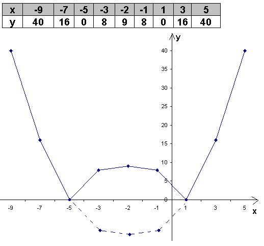 Часть графика, расположенную ниже оси х - симметрично отображаем вверх