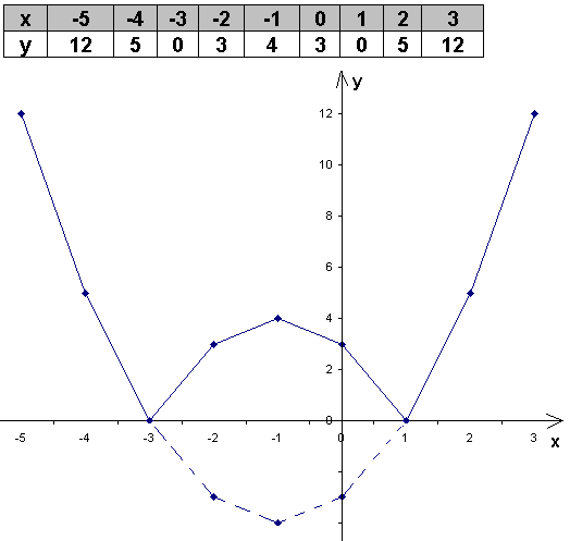 Часть графика, расположенную ниже оси х - симметрично отображаем вверх