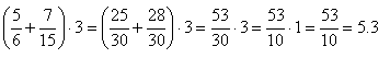 Задание Найдите значение выражения (5/6 + 7/15) ⋅ 3
