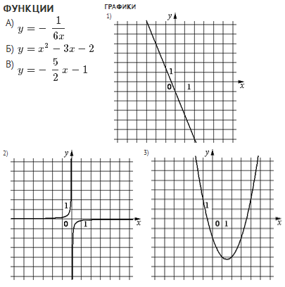 Задание Установите соответствие между функциями и их графиками.