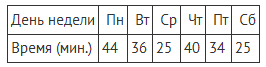Задание Василий измерял в течение недели время, которое он тратил на дорогу до школы, а результаты записывал в таблицу.