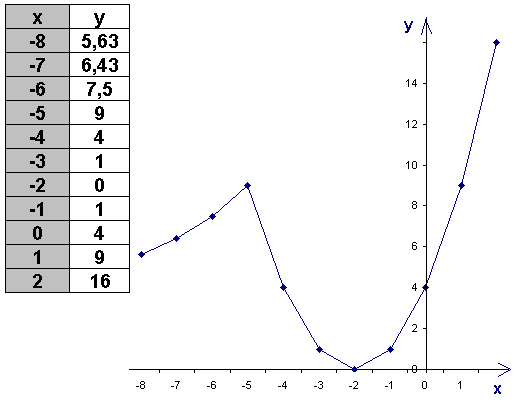 y= x2​+4x+4,  если  x≥− 5,