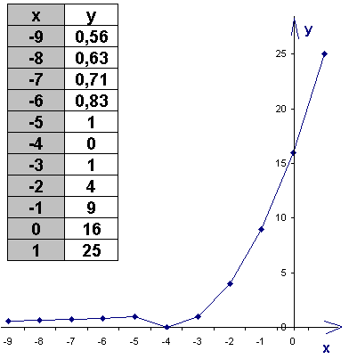 y= x2+8x+16, если x≥− 5,