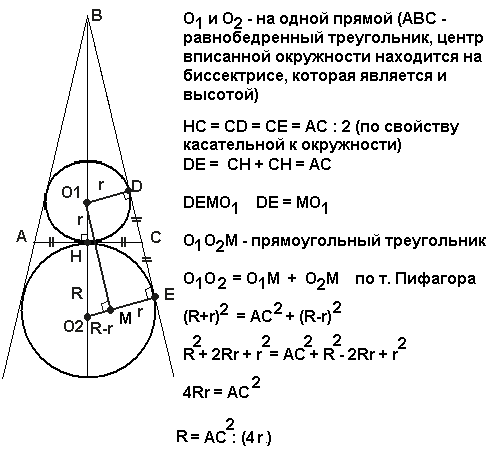 Основание AC равнобедренного треугольника ABC равно 4. Окружность радиуса 2,5 с центром вне этого треугольника касается продолжения боковых сторон треугольника и касается основания AC в его середине. Найдите радиус окружности, вписанной в треугольник ABC.